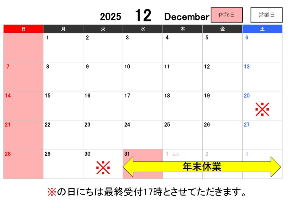 カレンダー内の 「※」がついている日は、最終受付を17時 とさせていただきます。