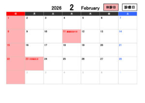 ご来院を検討されている方は、ぜひ2月のカレンダーをご確認ください。